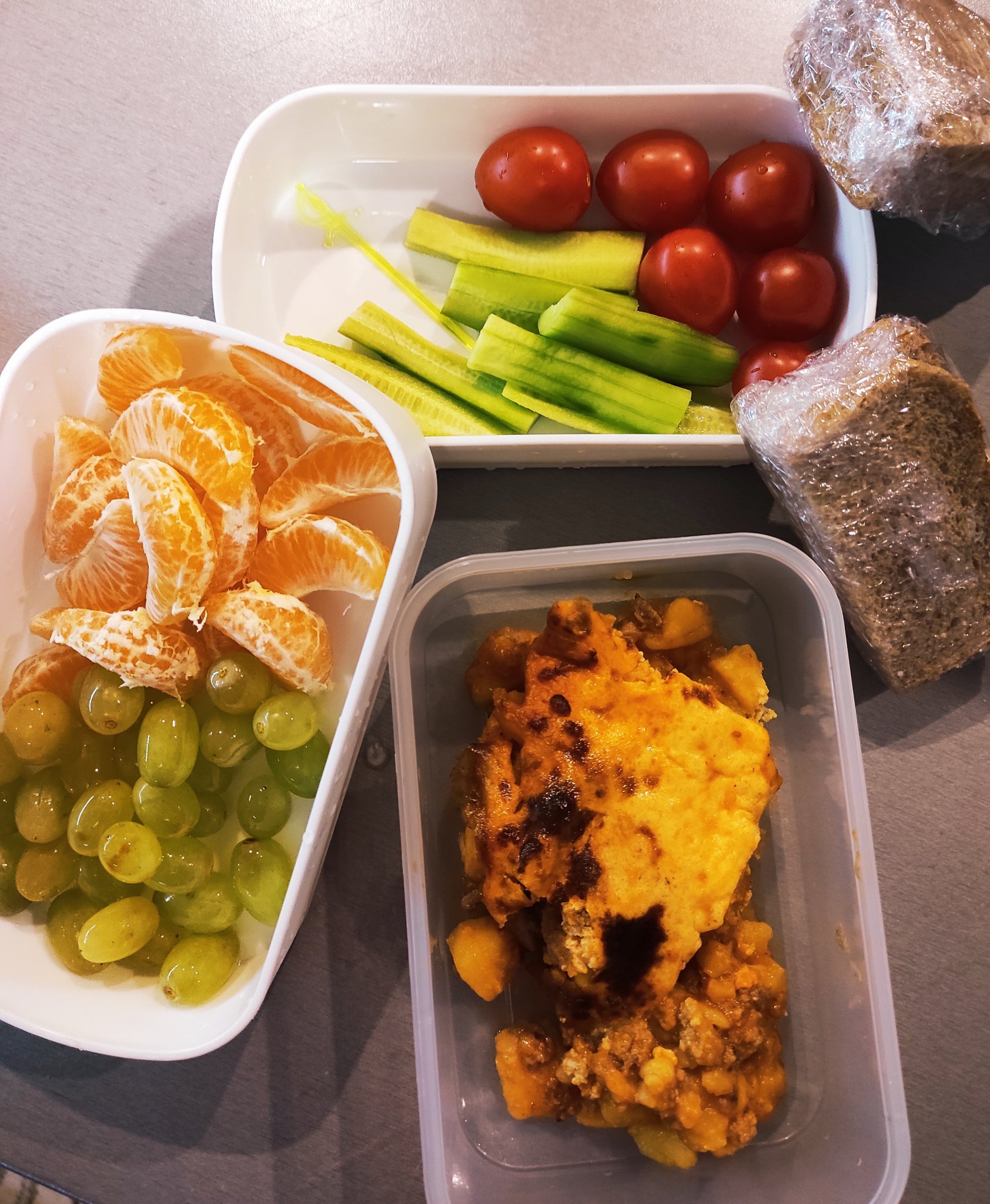 Здравословни и лесни за приготвяне ястия за деца включват сандвичи с пилешко, салата с фурми и моркови, грозде, шоколадови бисквитки, лозови сармички, кифлички с шоколад, бисквити , пица на парче или кремки със сирене и зеленчуци като краставица и домат. Други опции включват попара с препечен хляб и плодове или плодова салата.