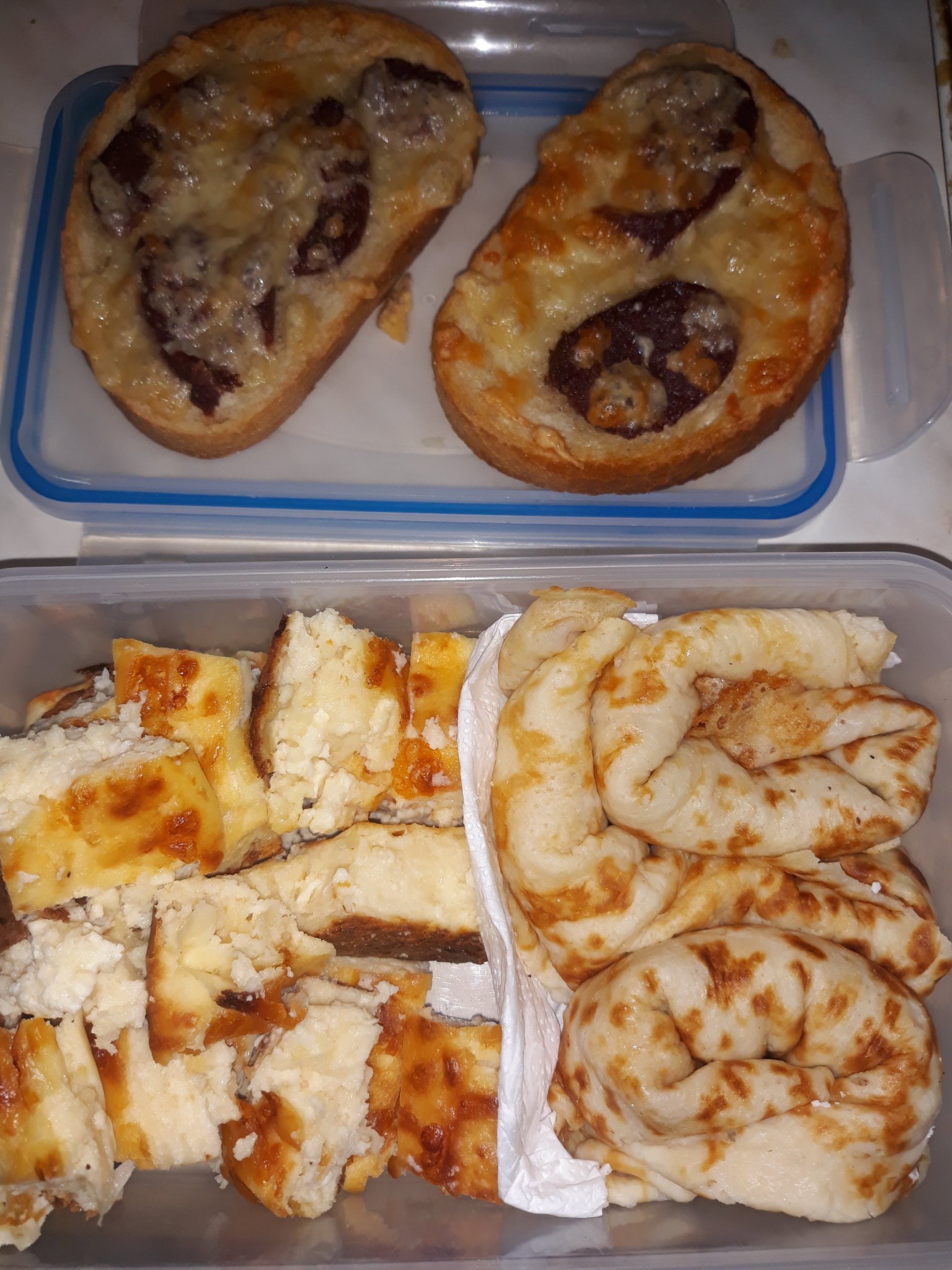 За днес чушки с яйце и сирене,кюфтенце от киноа (да видя дали ще се изяде), препечени филии, баница с праз и курабии(Не са снимани)