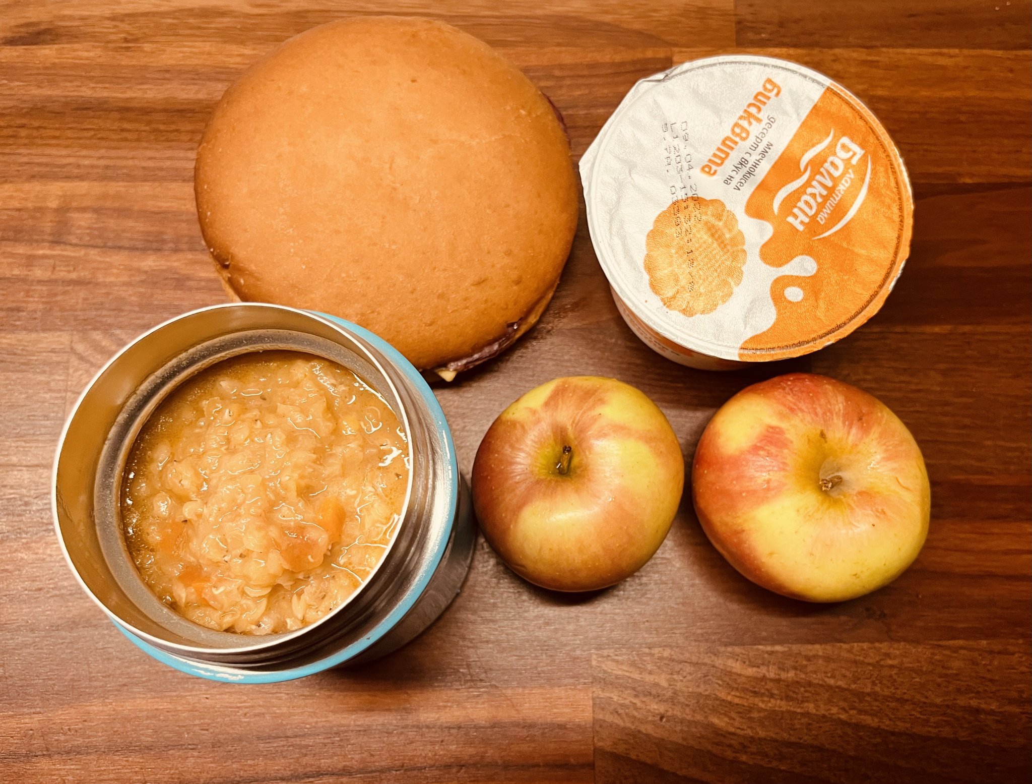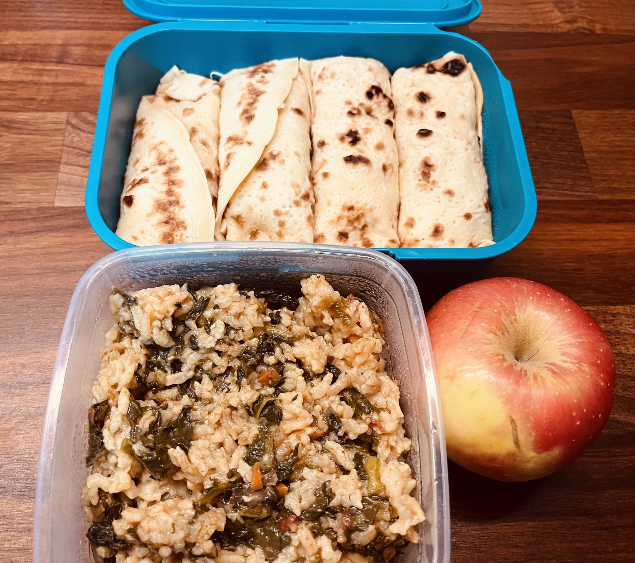 Здравословни и лесни за приготвяне ястия за деца включват сандвичи с пилешко, салата с фурми и моркови, грозде, шоколадови бисквитки, лозови сармички, кифлички с шоколад, бисквити , пица на парче или кремки със сирене и зеленчуци като краставица и домат. Други опции включват попара с препечен хляб и плодове или плодова салата.