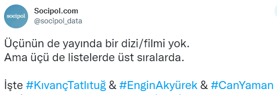 След няколко часа мълчание в социалните мрежи, турският актьор се появи отново. Той публикува близък план на лицето си и написа: „ Имам няколко нови изненади за вас, до скоро“.