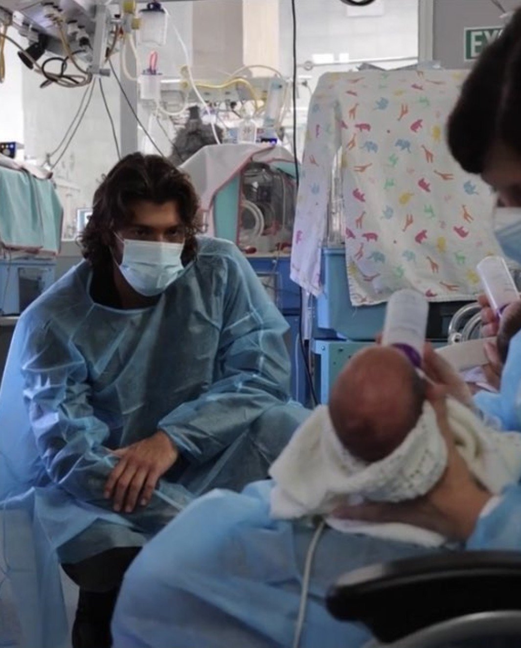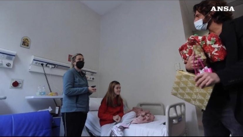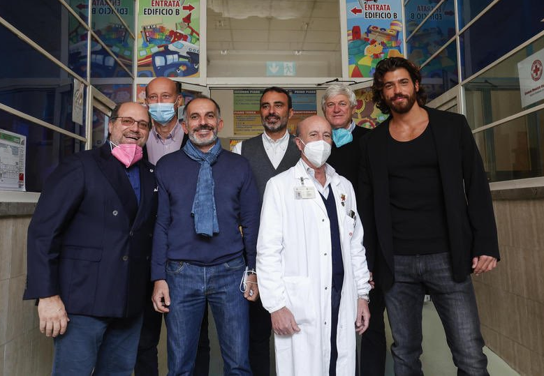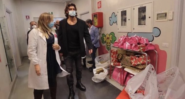 „Турският актьор Джан Яман в Поликлиника Умберто I: нови медицински апаратури и подаръци за хоспитализирани деца.“