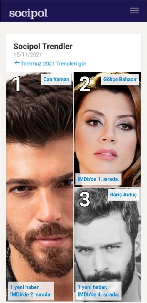 Nature Sparkles Джан Яман е позициониран като номер 2 от всички турски актьори и актриси