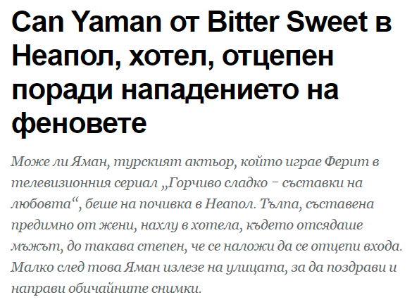 Елке, и аз се дразня на фенките, че са такива невъздържани и прекалено въодушевени, държат се неадекватно, блъскат се като ненормални, извън контрол са... Дори като ги гледам, ме хваща страх да не навредят (физически) на Джан..