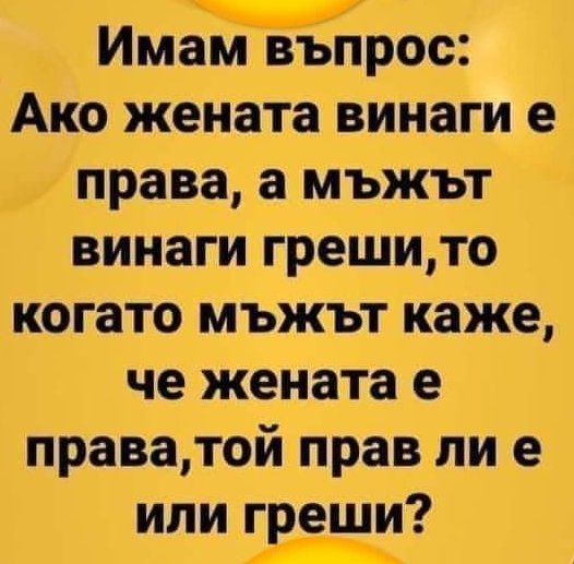 Мъжът трябва да го обичаш 10% и да го разбираш 90%! А жената трябва да я обичаш 100%, защото да я разбереш нямаш никакъв шанс!