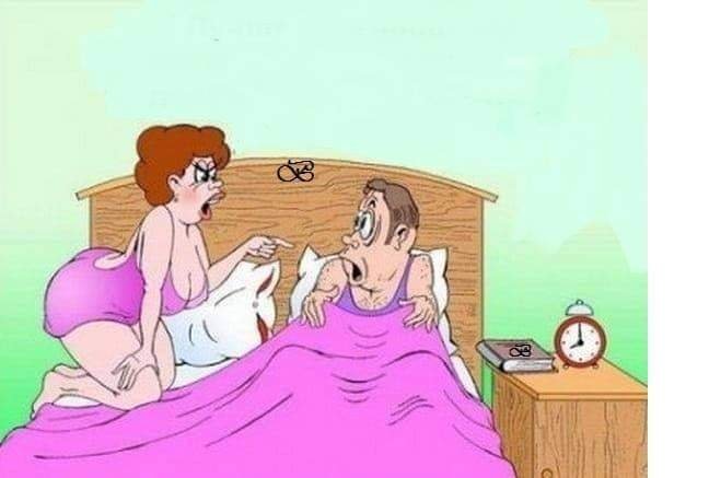 След дълга и уморителна сватба най-после младоженците са в стаята си. Щастливият съпруг сяда на леглото и казва: