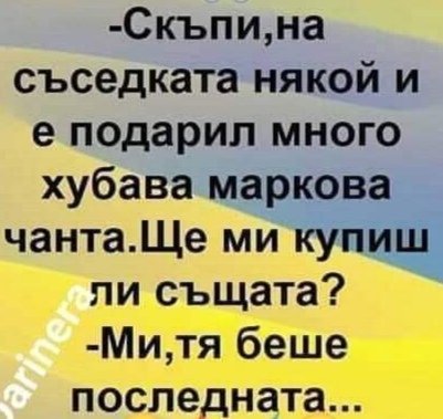 - Скъпа, защо не си носиш чантата за 800 кинта, която поиска?