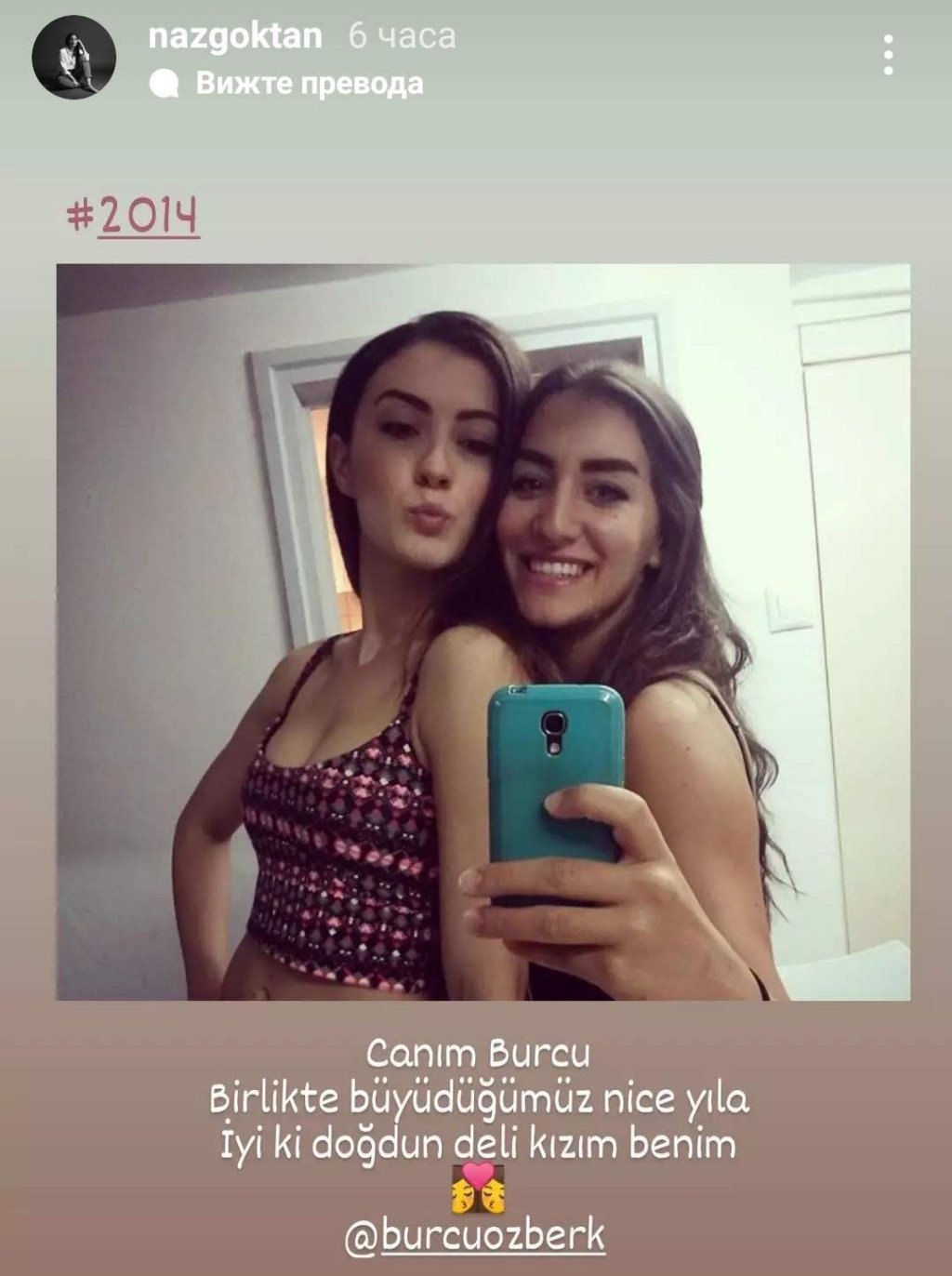 Аз ще допълня, че всички са навързани много здраво. Днес Бурджу Йозберк има рожден ден и се оказва, че не само Ханде и Демет са много близки с нея, но и Наз... Снимката им е от 2014 г.