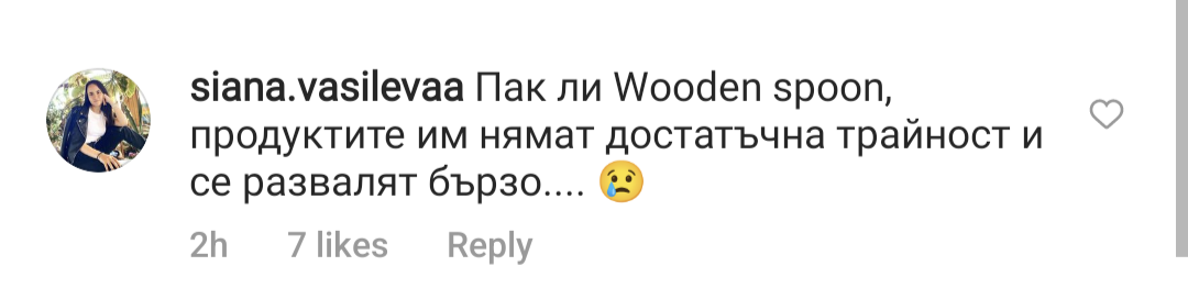 Кибрит пуснаха промото за тяхната кутия. Една дама, обясни какъв е проблемът с Wooden Spoon продуктите, в Инстаграм. Явно е пробвала няколко и е забелязала едно и също - след отваряне, се развалят бързо. Което обяснява миризмата на олио от серума след известна употреба ...
