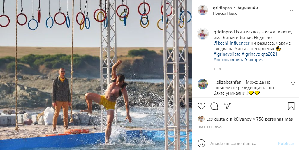 Гащите на Елизабет, надупена и копаеща ми бяха свръх противни за гледане. Красима и тя яко е загладила косъма. До сега не ми беше направила чак такова впечатление, но на състезанието беше потрес. За разлика от Паулина обаче куцаше през цялото време. Изненадах се от Борис. Та той има рекорди точно на набирания и то с допълнителна тежест, която реално е по-малка от колелото, което му беше на гърба. Грях ми на душата, но се изкефих, когато Андрей падна от халките. Но пък, добрече не се нарани. Толкова недомислена и опасна беше в това отношение играта, че направо съм изненадана, че нямаше пострадал. Може би, защото много малко хора успяха да минат.