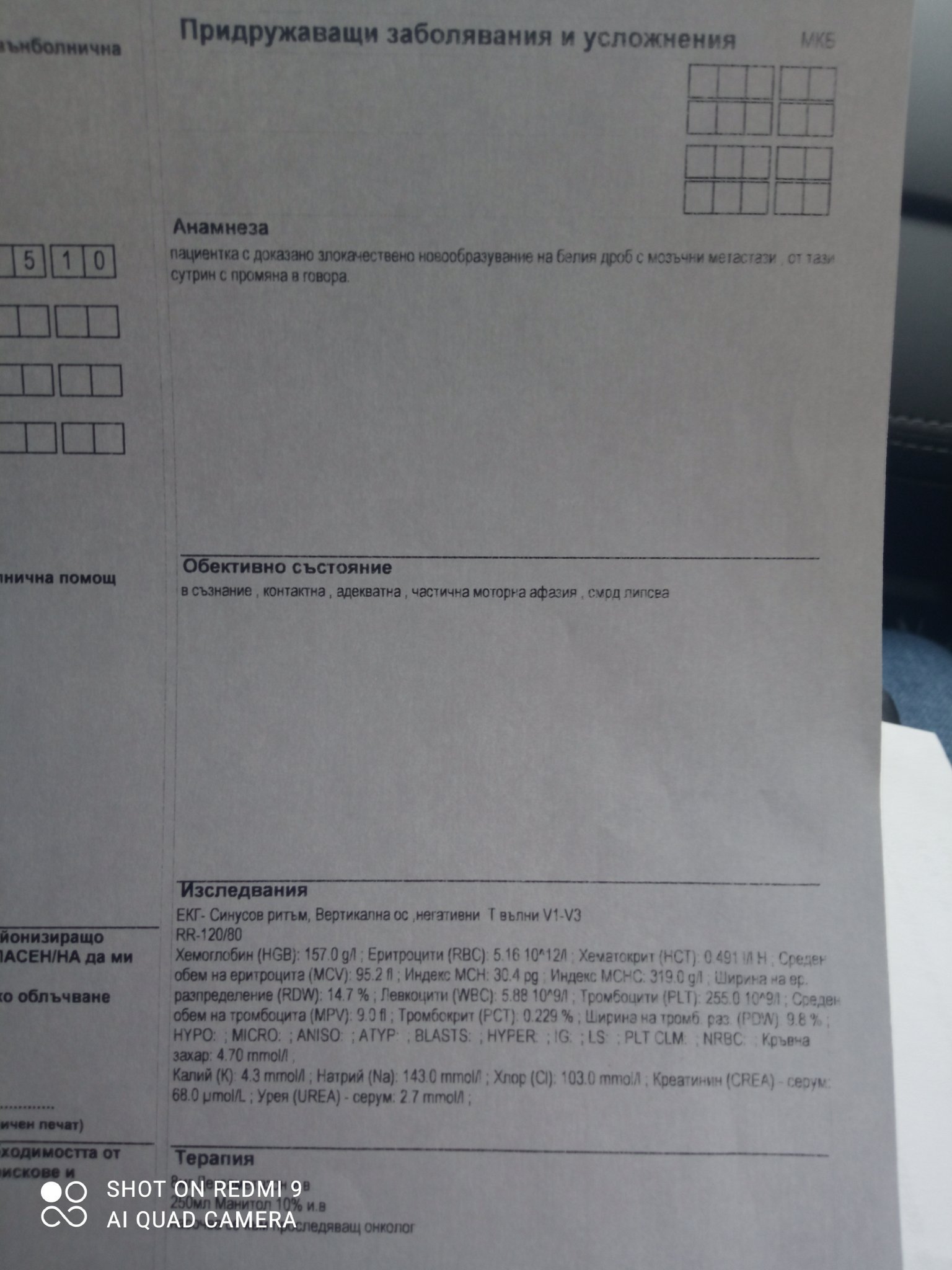 Ние тръгваме за Панагюрище,днес на мама й е станало лошо и има проблем  с говора,всичко разбира , адекватна е ,но не намира думите...Дойдоха от спешното,сат 98,кръвно нормално ,яде ,но.....явно има мозъчен отток..От там пък. Неможем да се свържем с никой лекар защото било лудница,чакам да ми върнат обаждането,но ние тръгнахме  Дори нз дали ще ни приемат защото не бил ден за прием,моля, помагайте 😭