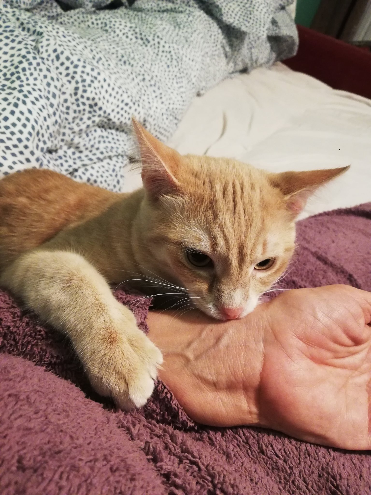 Мисля, че Франки ще се разгонва. Това за хапване, което прави май е любовно. Захапва леко и стои така, мърка и потреперва... и направи в мивката нещо, което не знам пишкане ли беше или маркиране, някак струята вървеше назад.. Ако не ми беше повредено обонянието щях да знам... И не посмях да го секна, само се карах, но той си довърши започнатото. Леле ако хората знаят какви ги върши котарака в мивката сигурно няма да ми дойдат никога на гости.