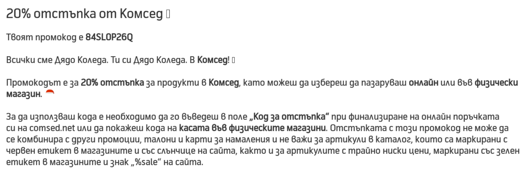 Код за 20% отстъпка от Комсед