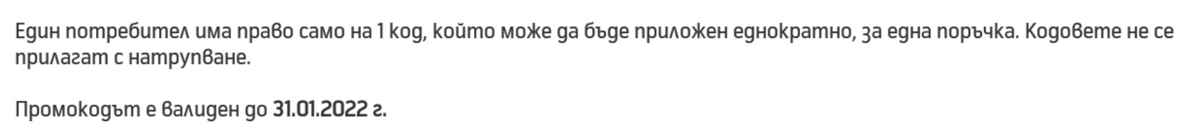 Тествах преди да го постна. Сега отново тествах и пише "Невалиден код за отстъпка". Ти пробва ли го?