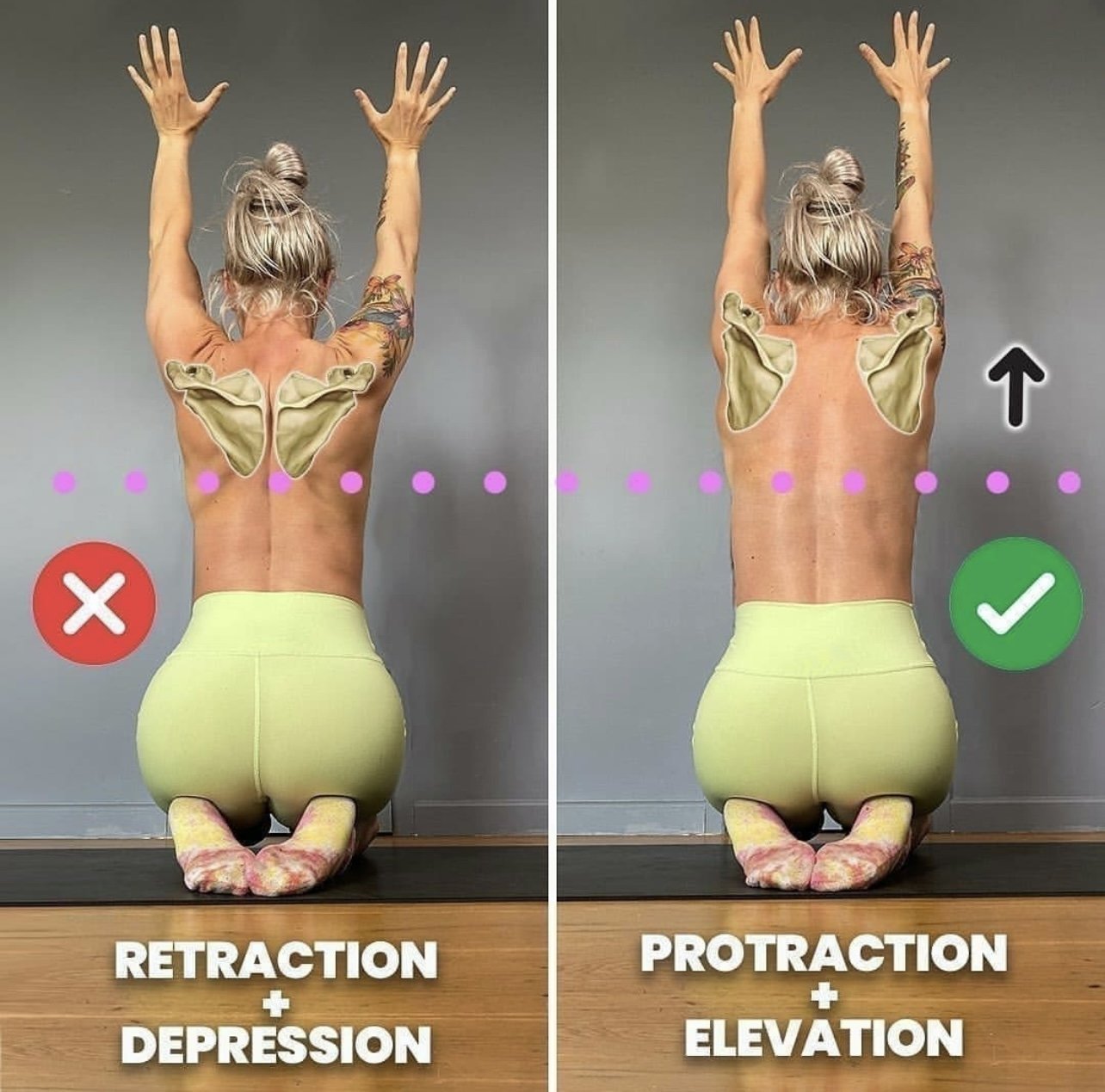 Казвала съм ви че в сухожилията зад капачката се събират голямо количество токсини, така пише Кино в книгата си, значи всяко Високо куче или обикновена утанасана ни помага да ги раздвижим и чистим. Идеята е да заключим капачката и мислено да я изтеглим нагоре, тогава ще се изпъне идеално кракът отзад, в началото е много неприятно но с времето се отпуска хемстринга.