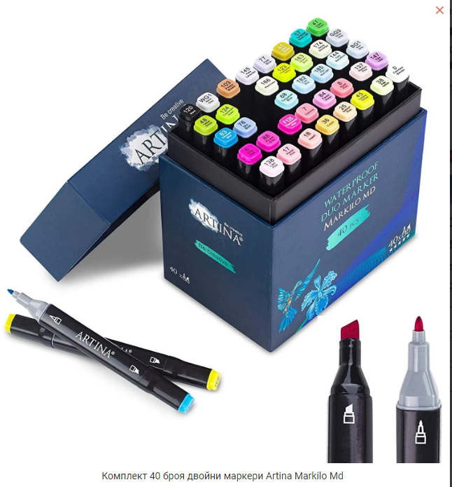 И тук да попитам, докато се наканя да поръчам и се изчерпа наличността на маркери Артина-40бр., които се оказаха най-очакваният Коледен подарък. Някой дали не ги е виждал някъде? Онлайн не намирам, освен 80бр.-ама 80 лв. за маркери не давам Simple Smile