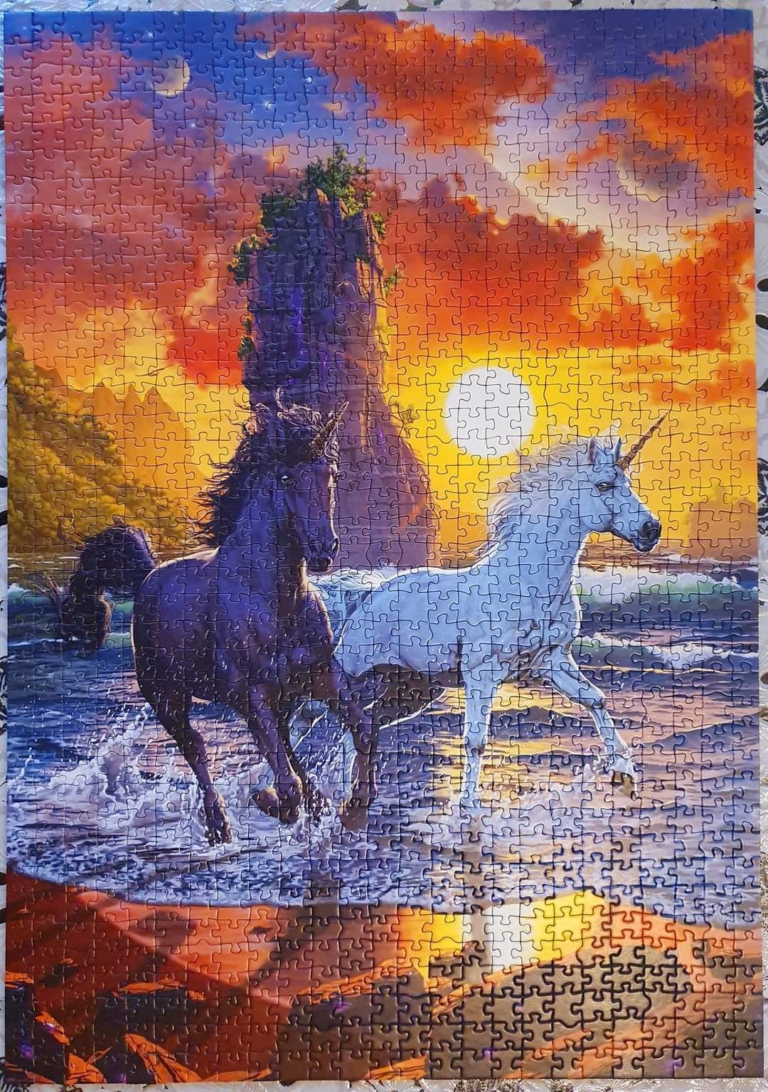 Пъзел Educa от 1000 части - Еднорози на плажа