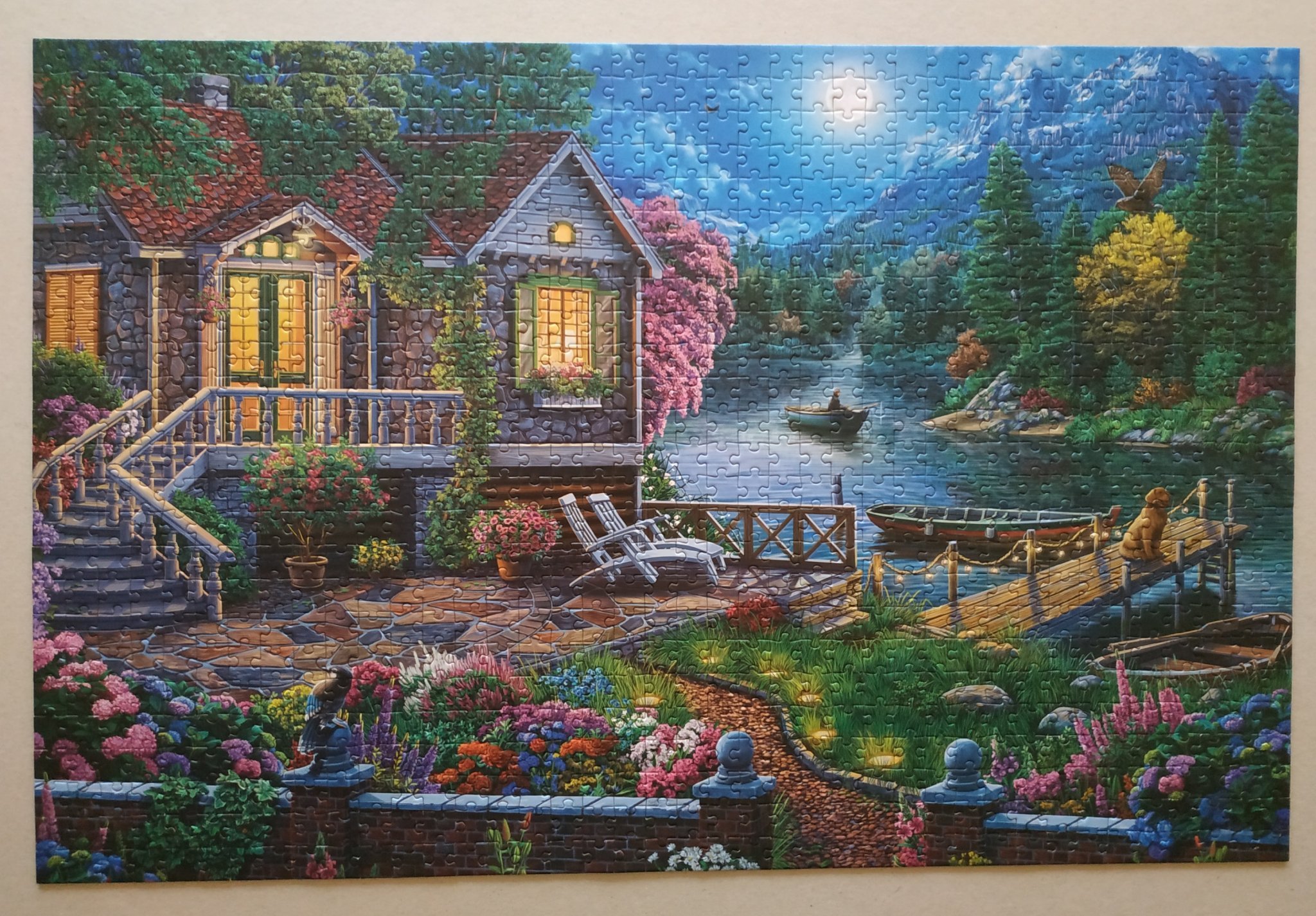 Corner piece 1000. Пак взет назаем Simple Smile Разкошна картинка, супер лесно и бързо се нареди. Здрава сглобка, дебели парчета, разваля се поне толкова трудно колкото Фалконите и Шмид. Но парченцата са ужасни гланцирани не само отпред, но и отзад. Пасват на повече от едно място. Като сгрешиш нещо и трябва да махнеш парчето, пращят по много неприятен начин. Има вътрешно усещане, че много лесно ще се разделят на слоеве, ако човек не внимава. Не бих си купила от тази марка, но пък бездруго видях, че в Озон не я предлагат, така че няма как да се изкуша Simple Smile