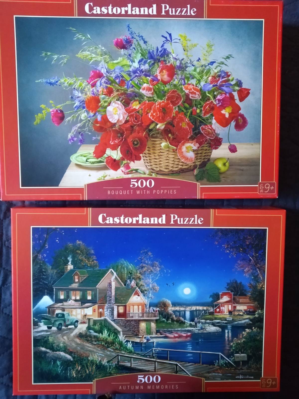 Аз продължавам скромно с по 500 части. Castorland. Ще пусна няколко пъзела за продажба в групите. Всички са показвани, но понеже сме се разбрали, казвам първо тук. Ако някой има желание, подарявам пъзела на Master pieces  с бонбоните. Аз се отказвам. Много е шарен, картинката е малка и гоня буквичките с лупа. Наредих рамката и още двайсетина парченца и дотук.