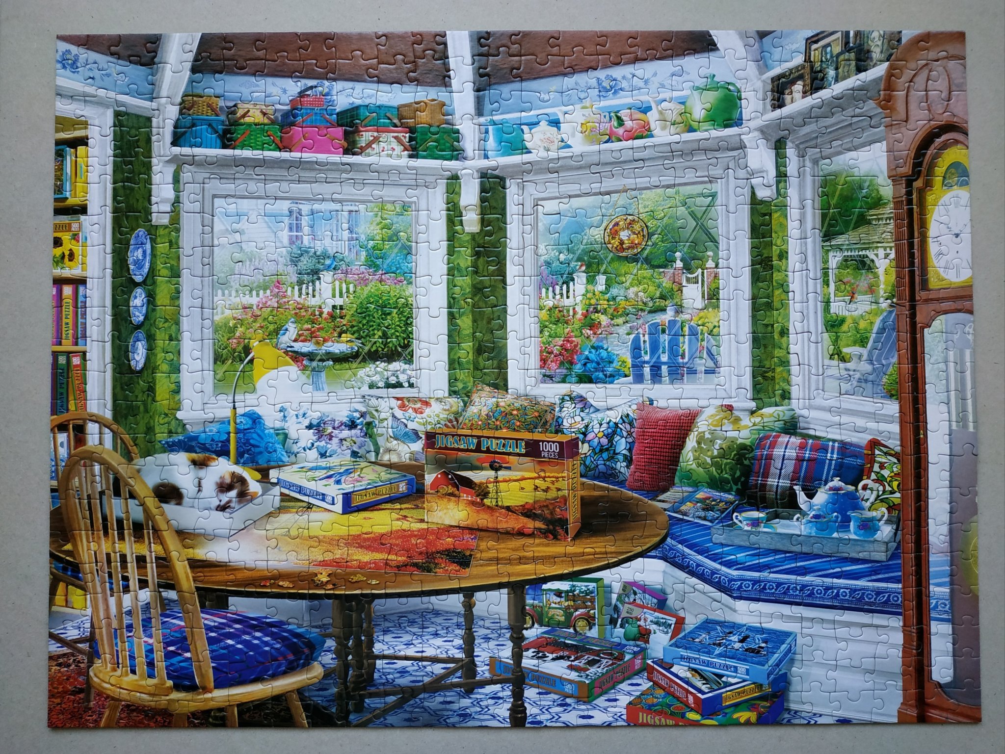 Проявих и аз любопитството (дето убило котката) да пресметна общата сума на поръчаните от Озон пъзели. Сумата е една и половина мои заплати. Също така пресметнах каква сума би се получила, ако си купя всички пъзели, които в момента са в списъка ми с любими, на пълната им цена: още заплата и половина. Тук е мястото да кажа, че съм си направила някакви мъдри изводи, но не, не постигнах просветление, не се засрамих и все така ги искам всичките.