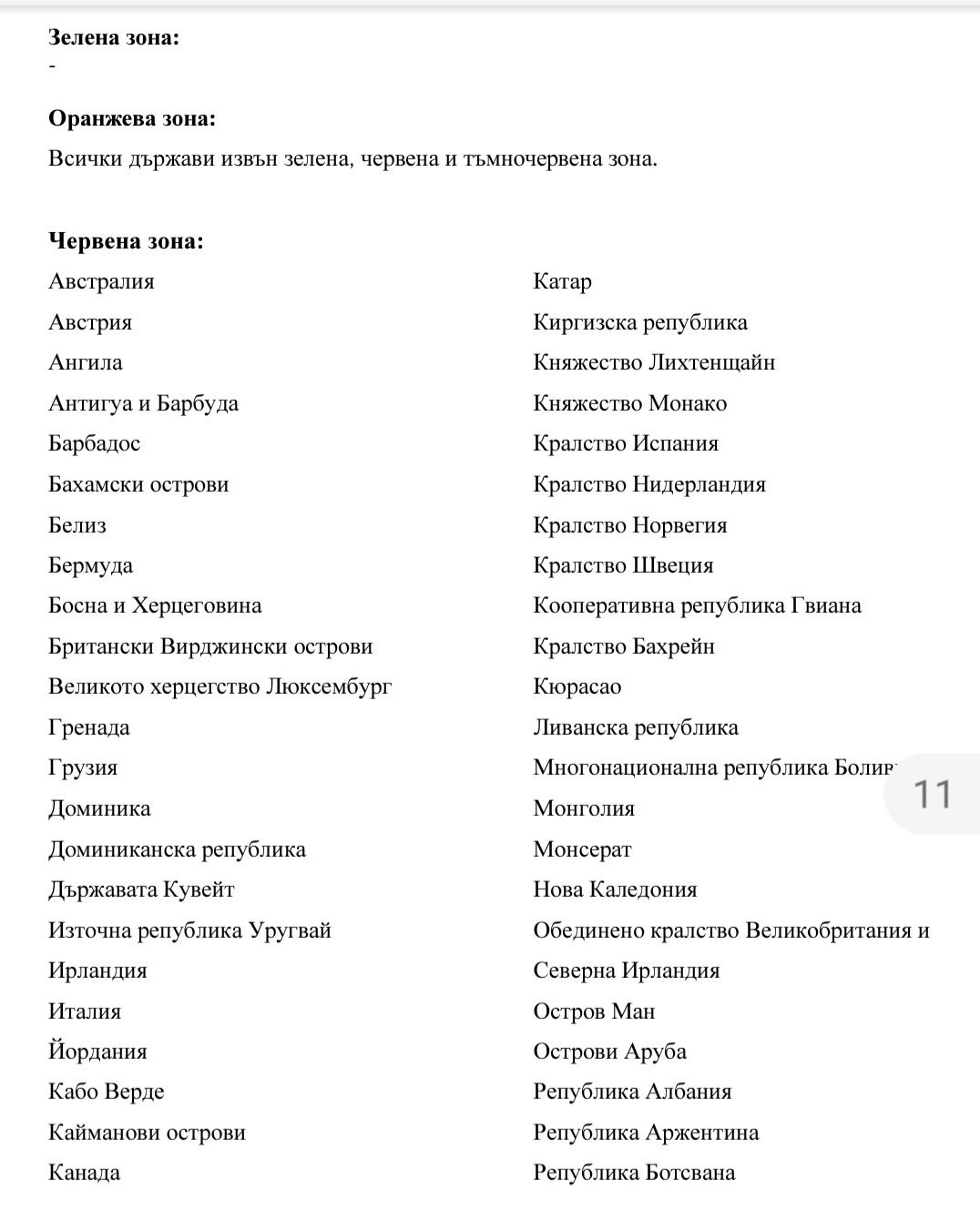 Изискванията за лицата, пристигащи от „зелена“ и „оранжева“ зона остават непроменени.