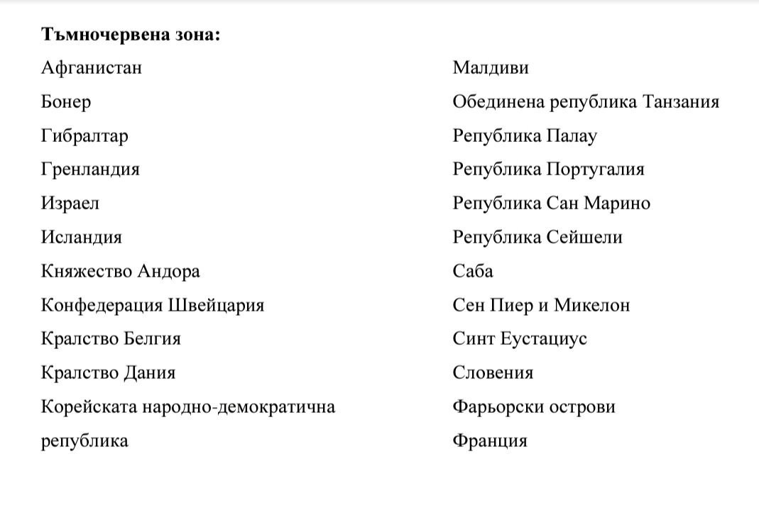 От 1 февруари в „тъмночервената“ зона попадат Израел, Швейцария, Белгия, Дания, Португалия, Словения, Франция и др.