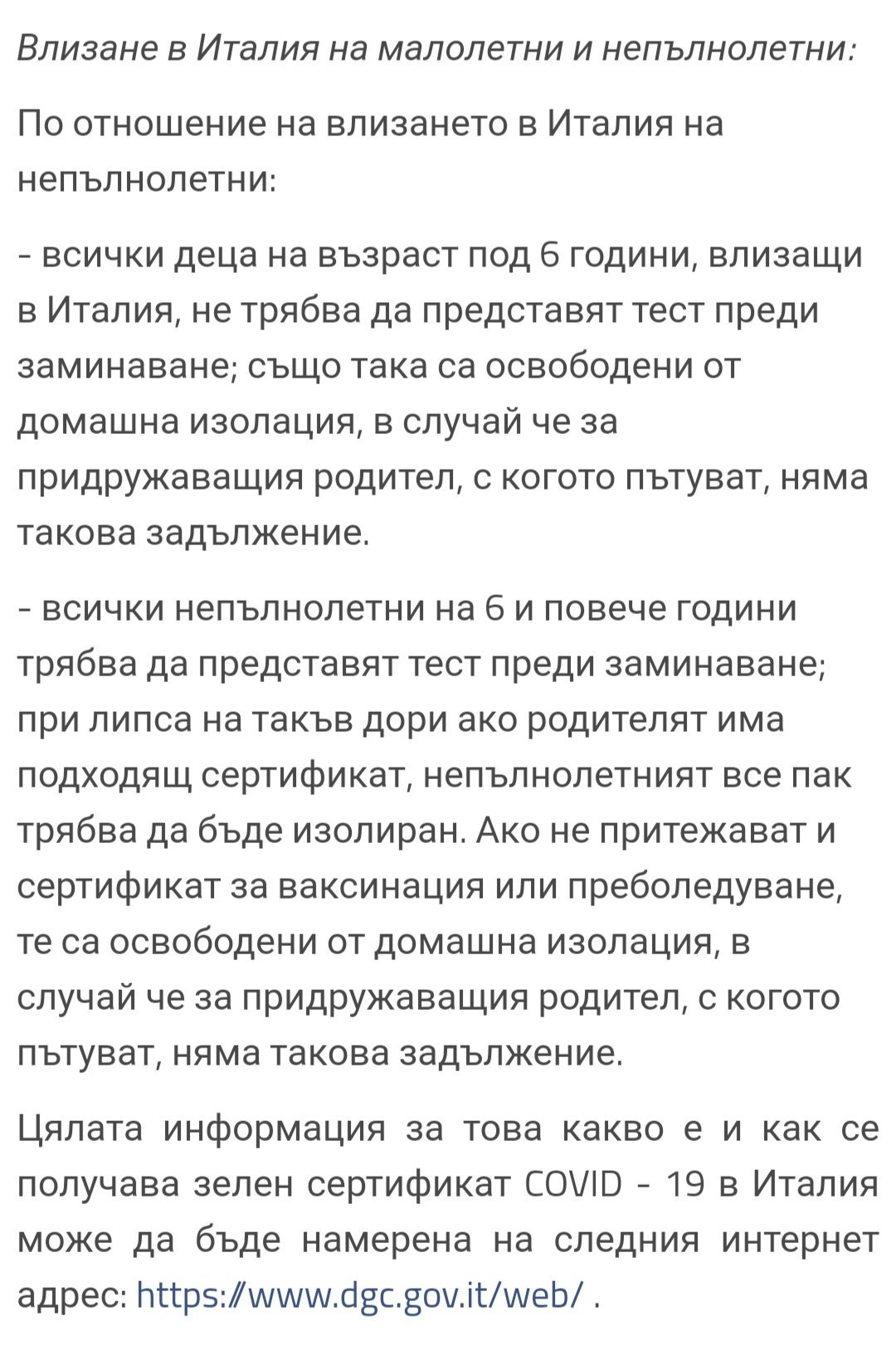 пътуваме до Италия в сряда- двама възрастни и две деца, съответно на 5 и на 7 години. След промените влезли в сила от 01.02.2022 г., ние възрастните можем и пътуваме със зелен сертификат за ваксинирани, но как стои въпроса за децата и по-конктрено съм объркана за 7 годишния?!