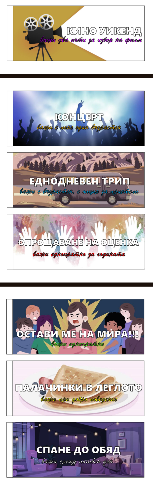 А това са ваучерите, които ще получава, ако е решила правилно задачата