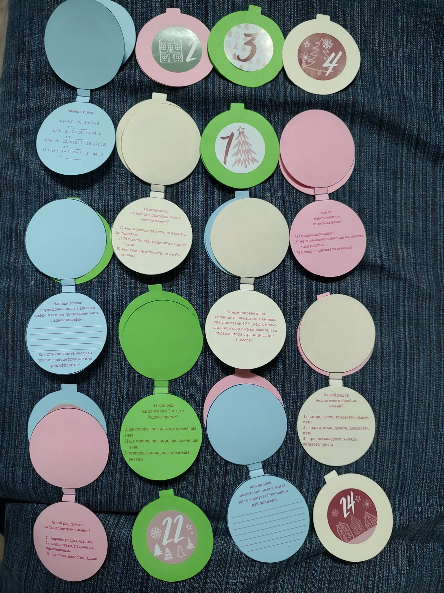 Ще има и листчета всеки ден с нещо допълнително. Накупила съм различни неща, а когато не е предмет е задачка или преживяване, но като цяло тази година съм доста неподготвена. Но и моите дъщери са на 17, 17 и 14 г вече.