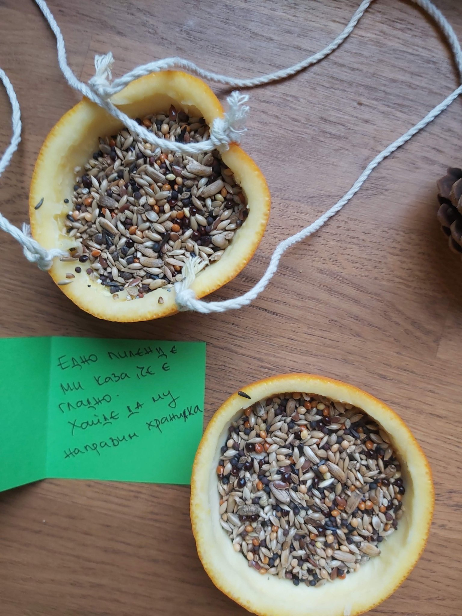 8. Едно пиленце ми каза, че е гладно. Хайде да му направим хранилка
