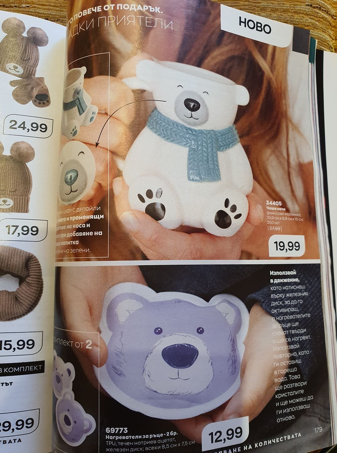 Аз пък имам този на AVON /не съм дистрибутор/ и от там още идеи за ключодържател с животни, нагревател за ръце, чехли за кокетки,  коледна чаша