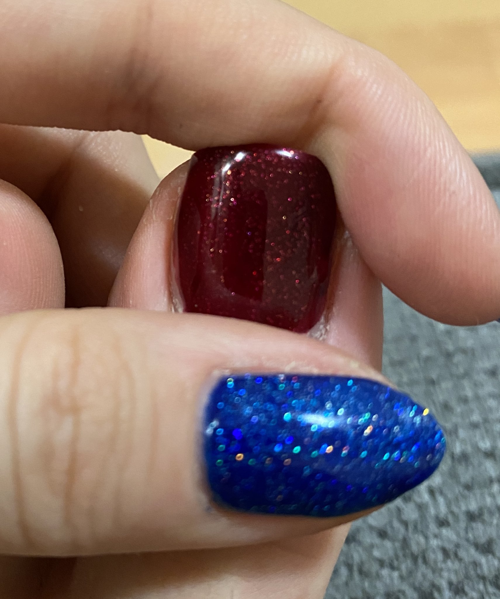 Джеси са китайски, да, както са казали момичетата, а качеството им е отвратително, лично според мен. На предната стр съм сложила линк към лака на Блускай (уж и те китайски, ама качеството е добро), само че лакът е лилав, а частиците червени, не обратното.  Иска поне три пласта, за да се нанесе добре. Прекрасен е за Коледа. Heart