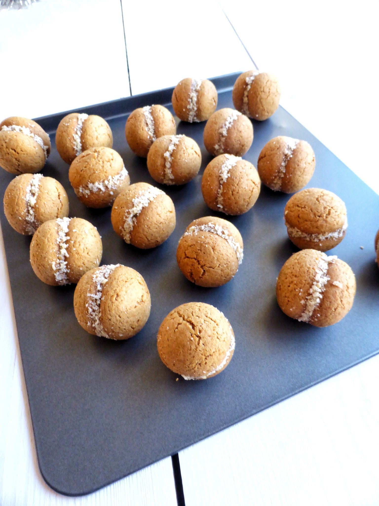 9.   Изсипваме в/у хартия за печене да поизстинат и още топли отлепваме едно от друго