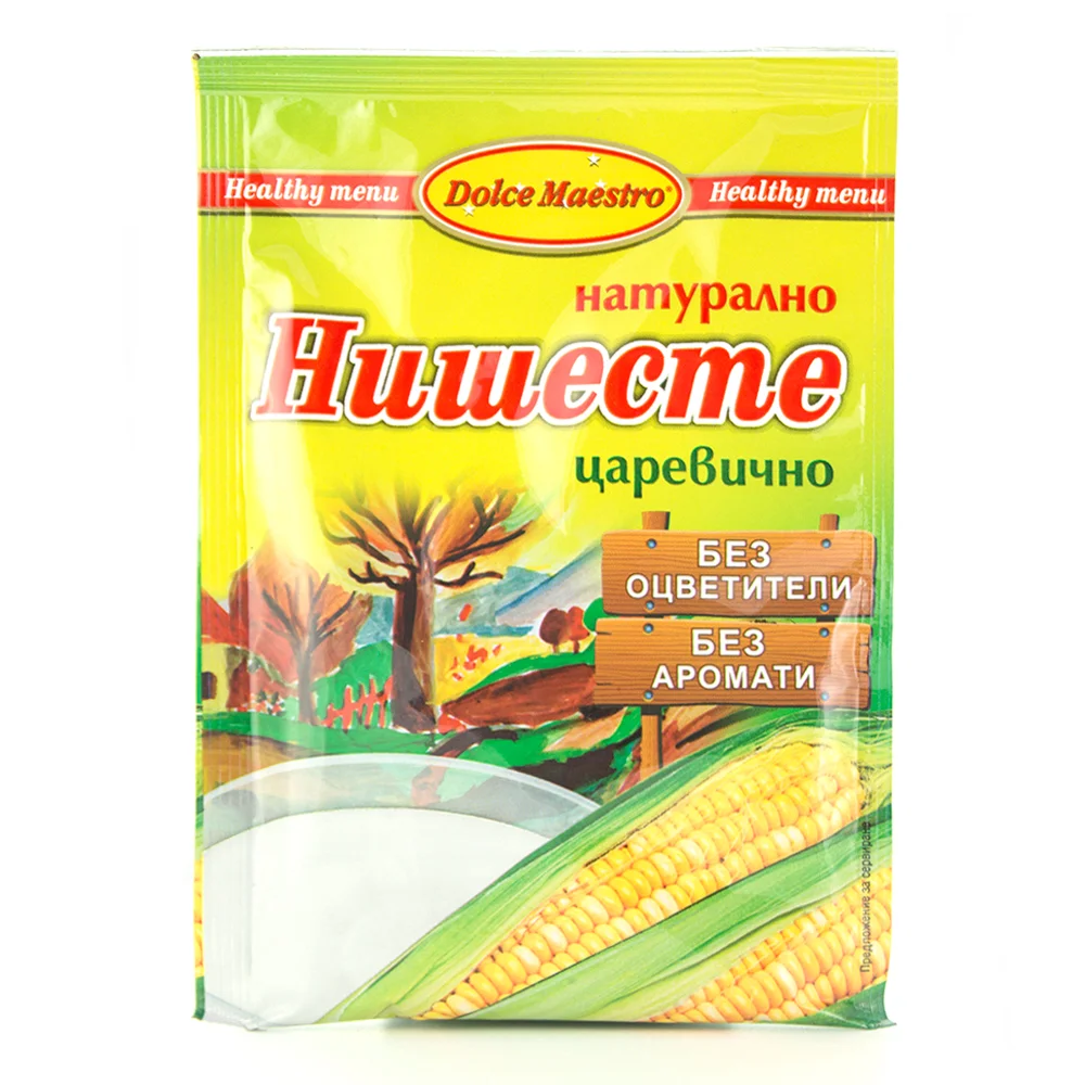 Царевично нишесте има навсякъде, не знам къде си търсила, но има, ето това търсиш -  С пшенично не съм работила, но може би е същото, но не знам.