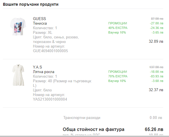 Някои потребители се оплакват от забавяне, по-голямо от обявения срок за връщане на продукти. Освен това има случаи на получени изцапан артикул, което води до разочарование. Въпреки безплатната доставка и връщане, някои клиенти изразяват недоволство от обработката на върнати артикули. Някои потребители съобщават за проблеми с доставката, като например опит за събиране на такси за доставка, което не е в съответствие с обявената безплатна доставка. Освен това има случаи на получени изцапан рокля и объркани номер обувки, което доведе до недоволство и разочарованние сред клиентите.