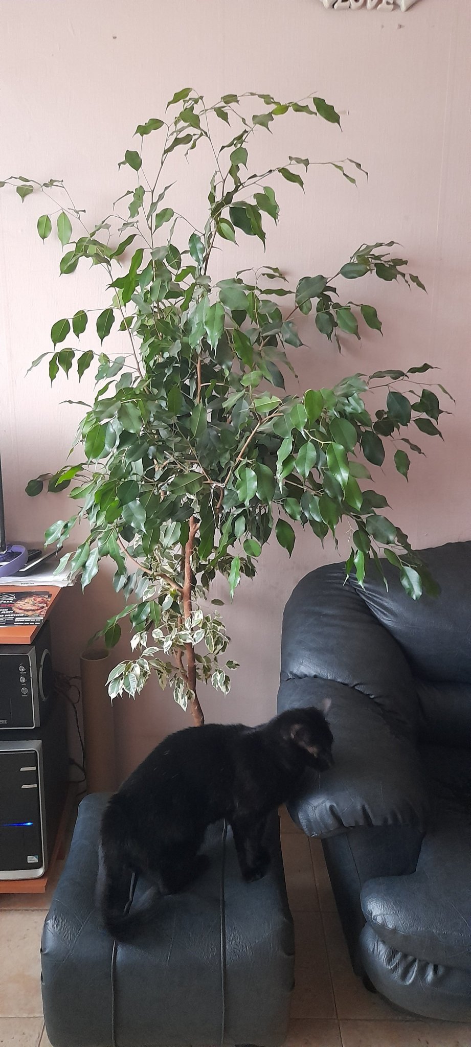 Калинче, аз имам и мой бенджамин, доста по-малък и много, ама много оплешивя. Между два дивана е, до вратата на хола към спалните и дивата котка минава през него на спринт от спалнята, към фотьойла в хола. Тя минава и през някого, ако е на дивана и изобщо не ѝ пука. Ама горкото растение, остана без листа. Моята приятелка ми даде нейния, защото свекър ѝ съсипва всичко, което има вкъщи. Вече забравя човека и полива саксиите по 3 пъти днеска, направо ги дави. Спасява си цветята раздавайки ги, но е много голям, никой не го искаше, а тя не искаше да го изхвърля. Събрах и зъврах няколко клона, да започнат нагоре да растат, че иначе и аз няма къде да го държа.