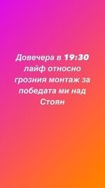 Ей голяма драма настанала. Стоян е добър играч, но никак не го виждам като краен финалист. А в какъв ред ще си отидат тези които не ги виждам като финалисти е все едно Той направи генерална грешка. Заяви , че ще саботира правилата и игратана ПРОДУКЦИЯТА. Не знае ли че , всеки заплашващ сценария е пътник. Не пожалиха Братоев, пък камо ли Стоян. Та от голямата си уста замина. И още нещо. Не можеш да наричаш и сочиш с пръст даден участник и да го наричаш" слаб, излишен ,най-слабо звено" , освен ако не си сигурен, че може да го биеш във всякакъв вид игри . Аз лично само тогава бих си позволила да омаловажа даден човек. Ако аз съм добра в едно , той в друго , не бих го коментирала. За това и да не се сърди Стоян, че му се падна игра в която е по-слаб.Просто и той е с голяма уста като Полина и сам си подлива вода
