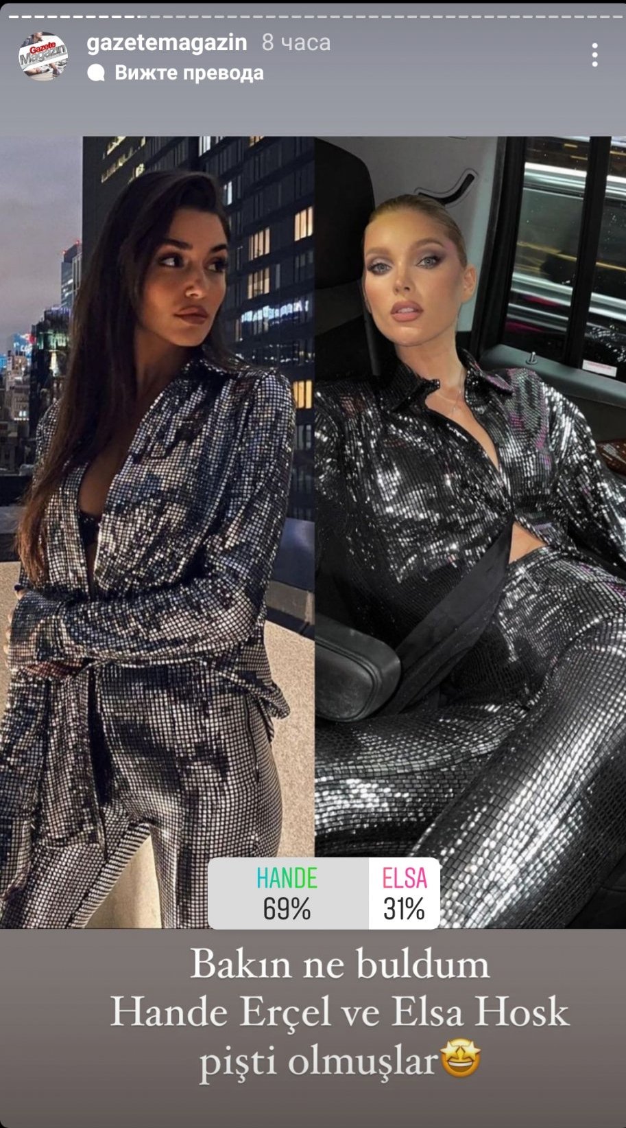 Оп, какво ми попадна случайно в инста. Това е профилът на някакво турско списание, пуснали анкета и познайте кой води Stuck Out Tongue Winking Eye ама защо така 69% на 31% , трябва да е поне 90 на 10, я влизайте да гласувате Joy не че е важно, просто за спорта Joy