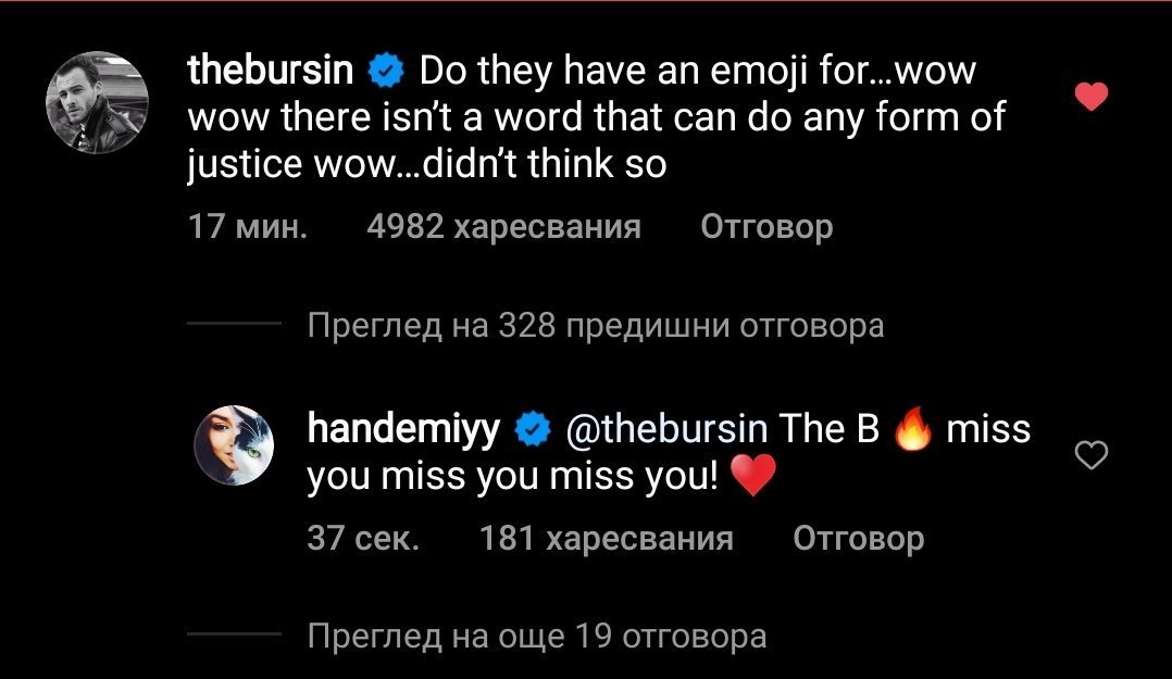 В Туитър вече започнаха да коментират написаното от Керем и отговора на Ханде. Един фен е написал с чувство за хумор: