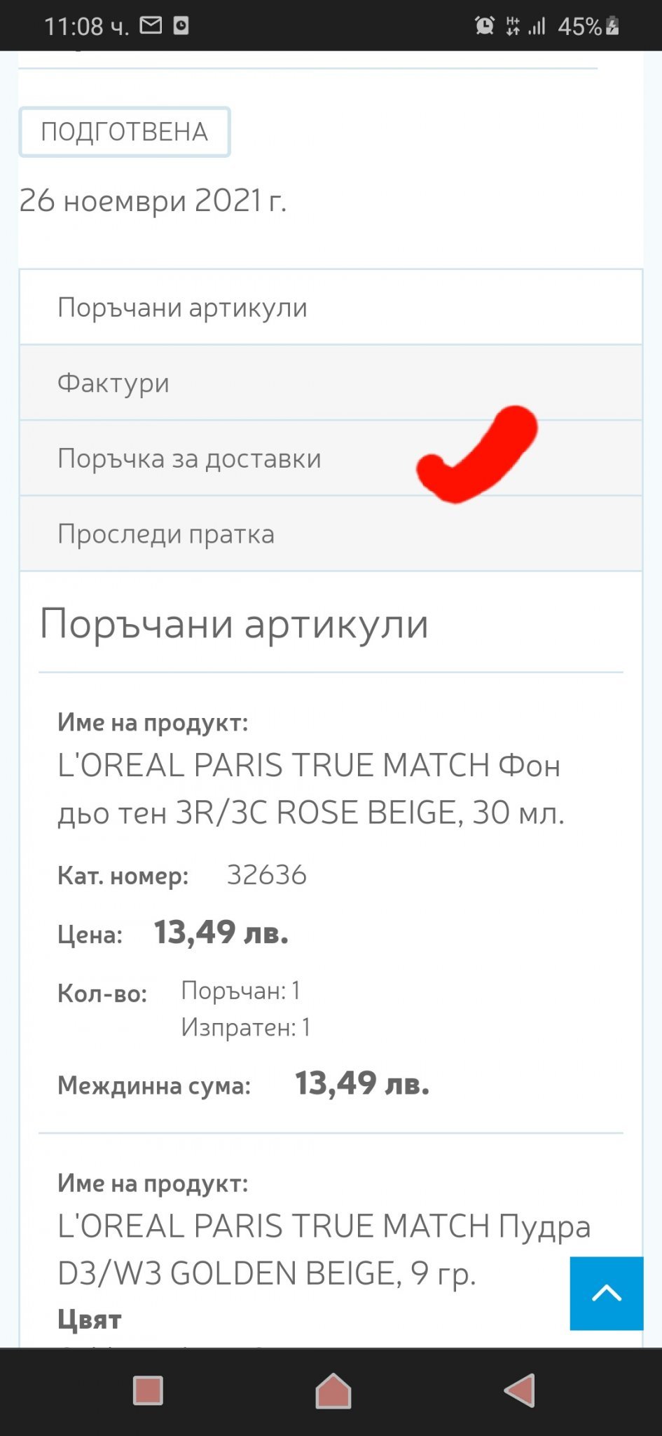 При мен всичко е отбелязано като изпратено, но сумата от смс-а е - 2 продукта. Много съм разочарована, защото заради единия от тях пуснах поръчката - маска на Uriage. Ако не бяха едни кремове за свеки, нямаше да взема поръчката 🙄