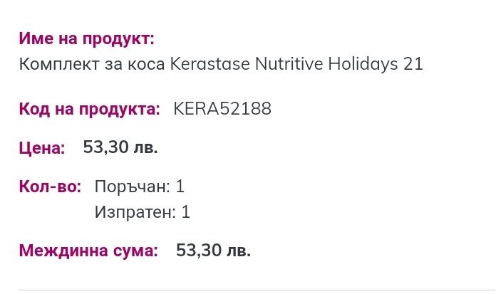 Моята поръчка е за над 200лв и има само един от така неудобно намалените комплекти на Керастас. Направих я тази сутрин към 10ч и също е със статус "обработва се".