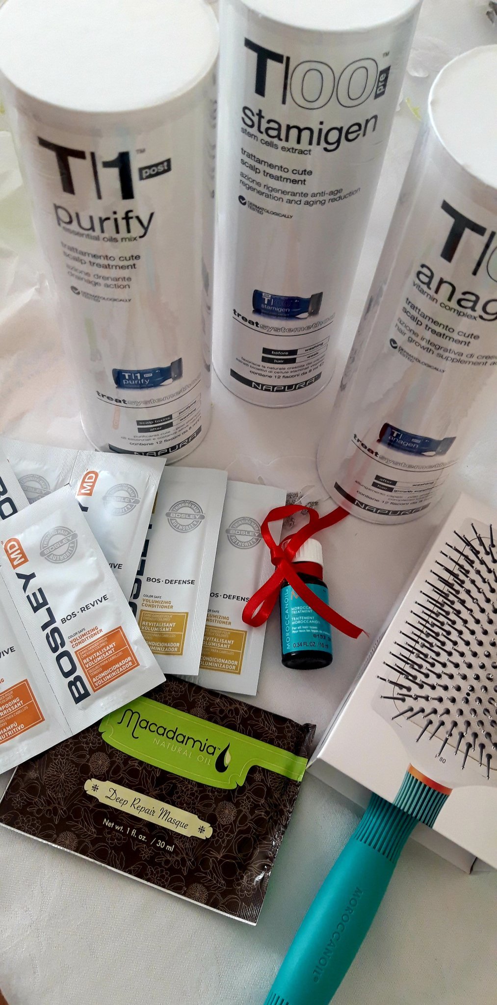 На мен предния път мострите ми бяха на Bosley за боядисвана коса и ги подарих. Бяха девет (!) плюс една маска и малко от олиото (в скрития текст). Явно съм попаднала на съвестен човек, който я е опаковал. Ако чете, да знае, че е имало полза, защото тази ми приятелка сега си поръча чрез мен от Bosley. Давайте мостри на хората Sparkling Heart
