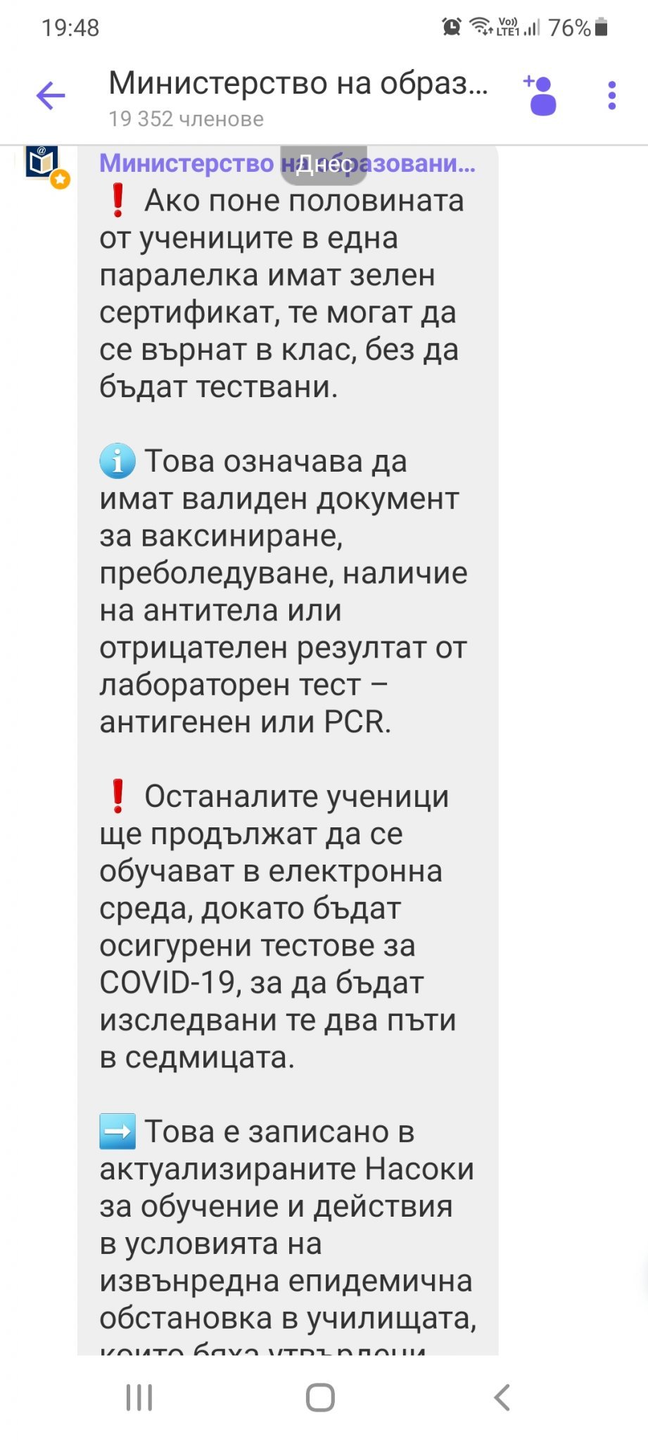 A пък във вайбър канала на МОН в противоречие на насоките казват: