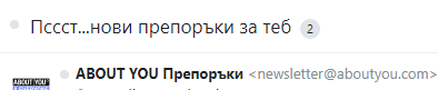 Преди малко получих нюзлетър от About You, озаглавен "Псст..." . Отговорих им "Да не съм куче"?