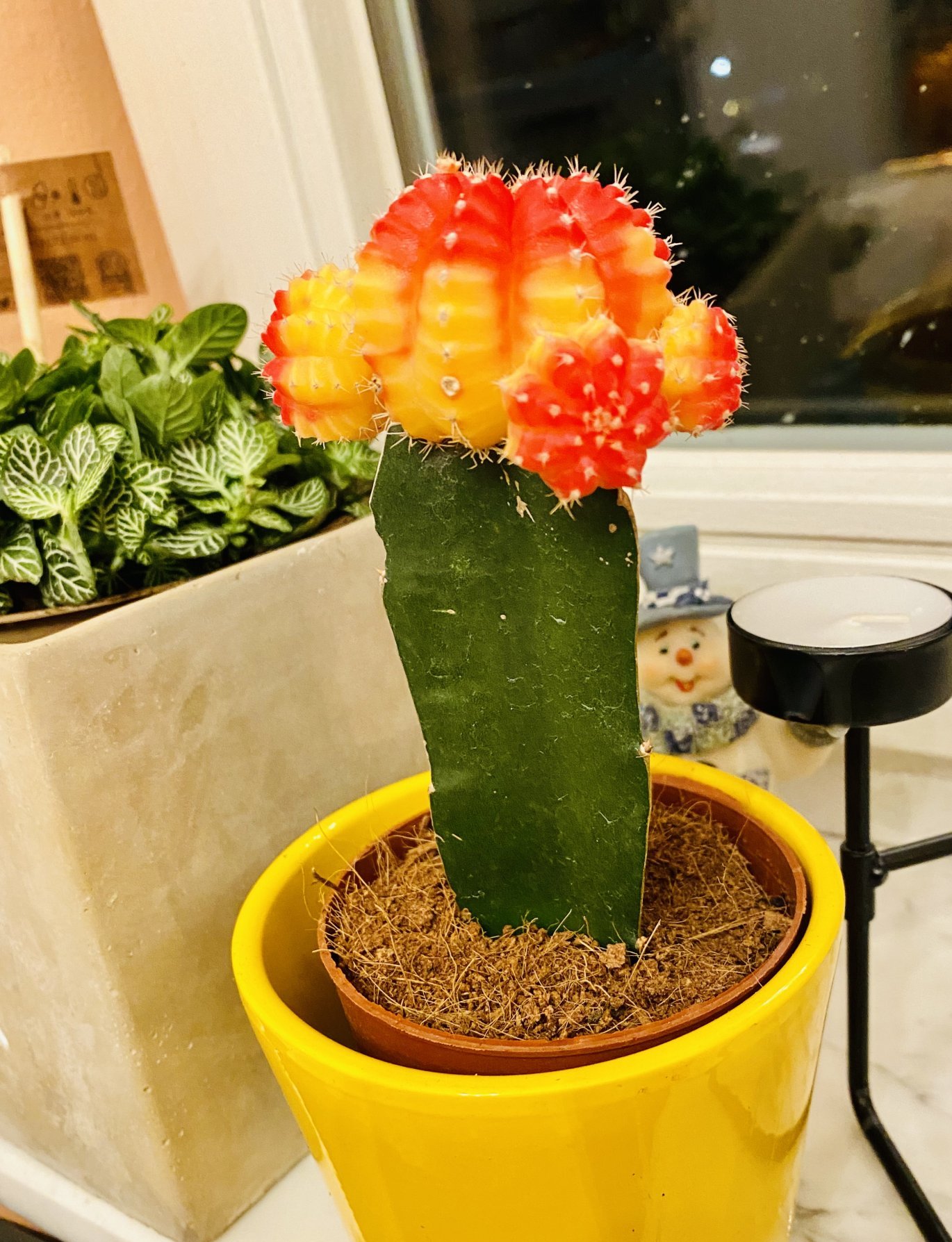Този двуцветния кактус с тюрбанчето ми е интересен колко издържа, това е присадка, нали?