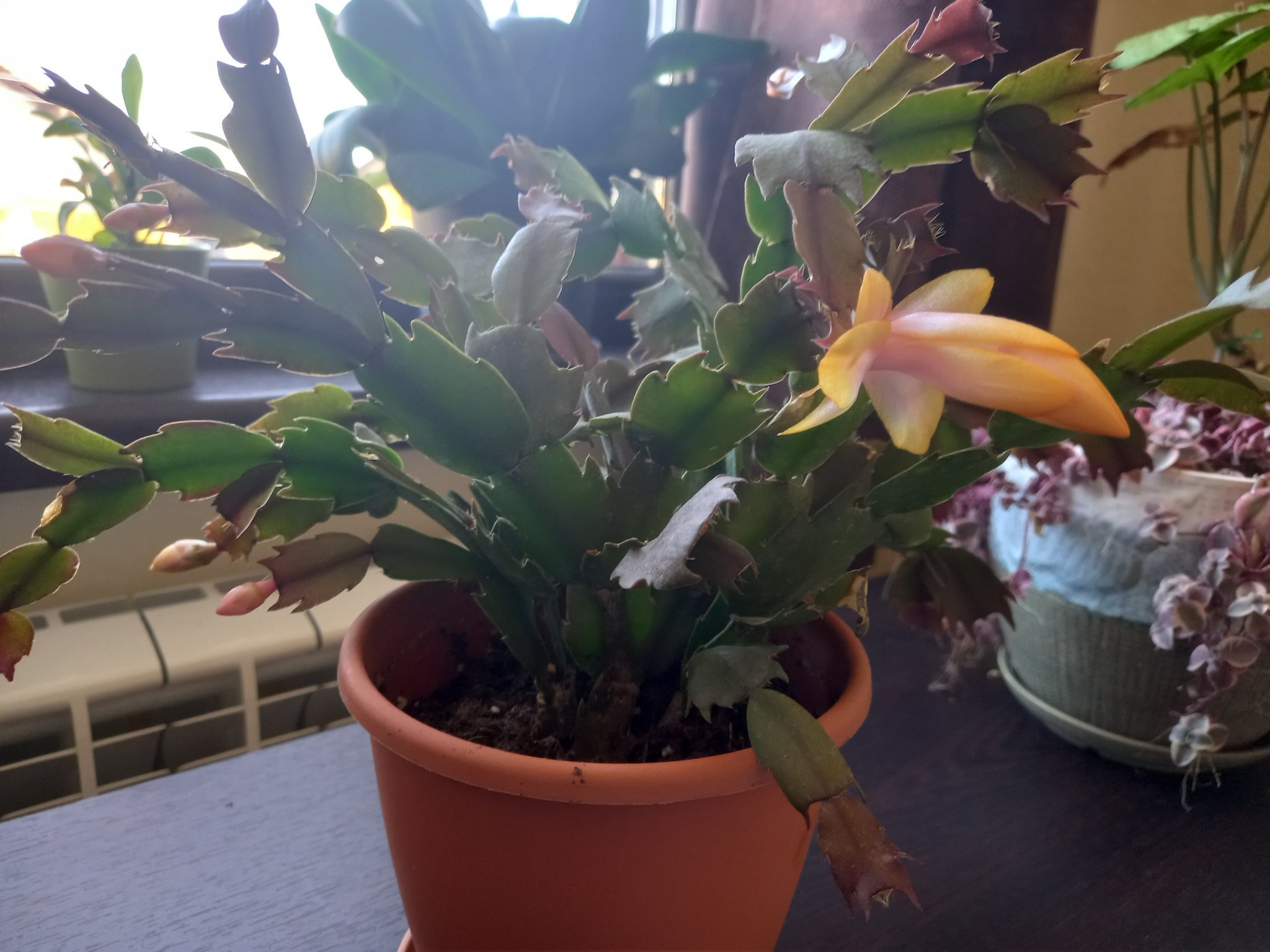 И едно цъфнало коледниче в жълтооранжавеникаво. Изкарало е доста пъпки