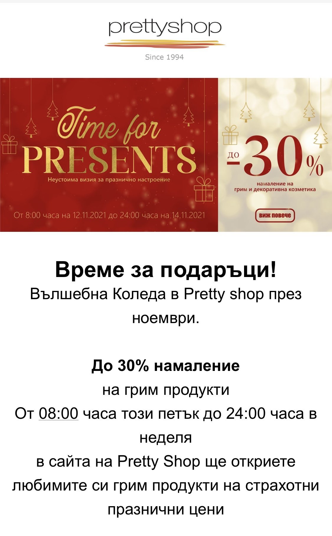 П.С. Обадих им се сега по телефона да ги питам директно, дали аз нещо не правя правилно на сайта и защо не излиза вземане от магазина при опциите за доставка. Казаха ми, че такова е било нареждането, за да няма струпване на хора по време на кампаниите им. Питам, дали мога да взема сенките от магазина на обявената им цена. Не, не може. Само срещу 6 лв . ще видя сенките на тази цена, егати!