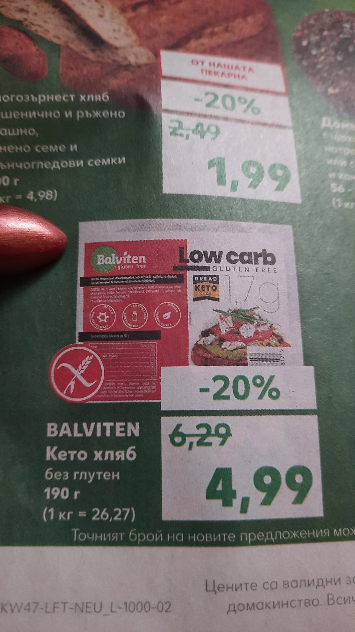 Междудругото...тази седмица има "кето хляб" в Кауфланд, на прИмоциЙя! 😆 Около 190 грама за няма и 5 лева- далавера, а? 😜