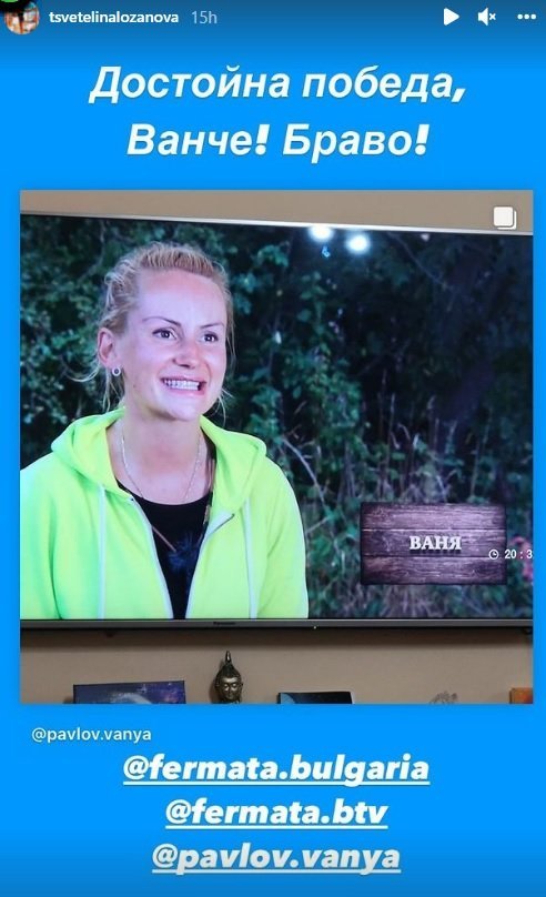 tsvetelinalozanova Моята приказка приключи, но аз имах късмета и изживях радостта от шанса да се докосна до приключението наречено Фермата. Изживах невероятни моменти там вътре, научих толкова много нови неща за мен, с други не успях да се справя, но пък разбрах, че има чар дори и в това да не успяваш на всяка цена. Най-истинското, което ще остане за мен е, че през по-голяма част от времето ми прекарано във Фермата бях исткнски щастлива, така както отдавна не ми се беше случвало! А истинската победа е това, което ще остане в сърцето, за себе си смея да твърдя, че аз имам своята история там, история, която ще пазя цял живот! Възките, които създадох с хората там също! Никога няма да забравя и каузата, заради която всички ние бяхме вътре! Чувството да се докоснеш до това място, да помогнеш, за да му вдъхнеш нов живот е безценно!