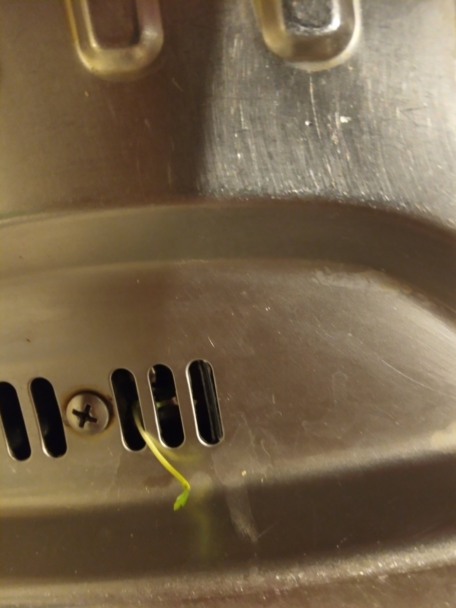 Вижте къде ни пониква растение! 🙃 Явно някоя семка от чушка или друго е попаднала в сифона на сушилника на мивката.