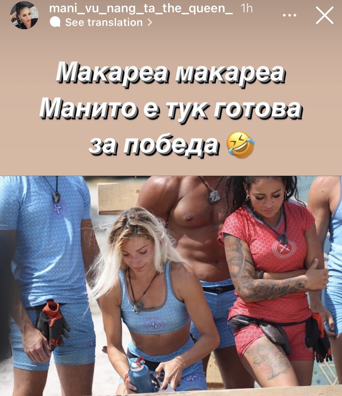 Е това с преместването на Мани при Приключенците, беше върха. То сълзи, то рев, сега да видят дали е лесно да си с Мани в един отбор. Много се смях на тази размяна. Не могат я изтърпя там мъжете, за Поли да не говоря. Тя сега и съмишленици няма. А Елизабет защо пък Милена открадна?! На тях им трябваше Рабухчиев, като силов играч или Вальо. Ще има сигурно още силови игри, а те с толкова жени.